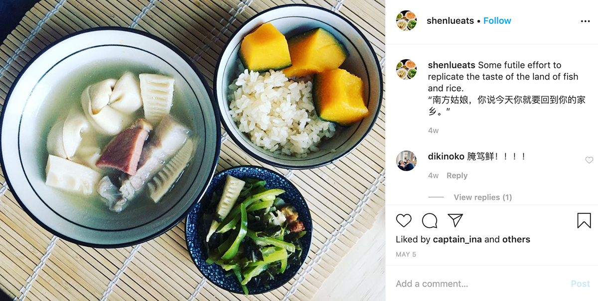 Yanduxian (soup made with spring bamboo shoots, cured and fresh pork, and knots of pressed bean curd), stir-fried chili pepper, bamboo shoots and pickled mustard, rice with steamed Kabocha squash.