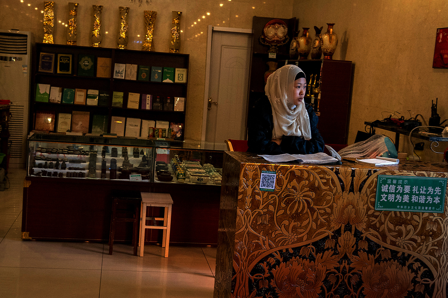 Four bored Hui attendants, all in their early twenties, stood by the entrance taking tickets. Occasionally, one of the girls would rush over to the rack to help an adventurous Han woman into an abaya. Mostly, the four just chatted softly with each other. They were thrilled to see a Westerner—I was the only one that day, they told me—and eager to ply me with questions about who I was and why I was there. When I explained that I was an American who had come to Yinchuan to look around, one of the boys ventured to ask whether I was a Muslim. “I am not,” I answered, and he looked disappointed, so I offered that I could speak Arabic.