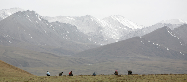 Mushroom gatherers converge and crawl on hillsides in Qinghai province every March while foraging for wild caterpillar fungus.