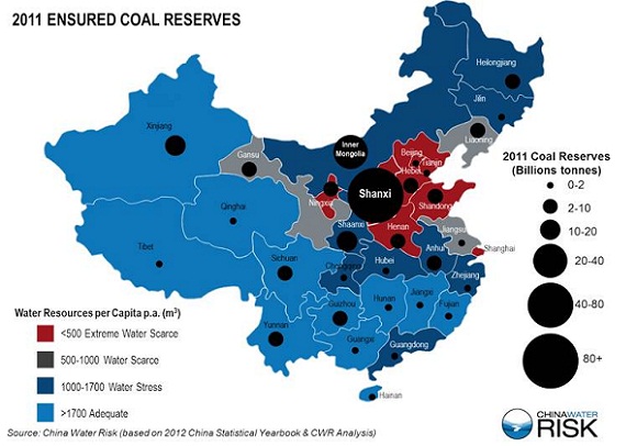 Worse still is that fifty-three percent of China’s ensured coal reserves lie in water-scarce regions and thirty percent lie in water-stressed regions.