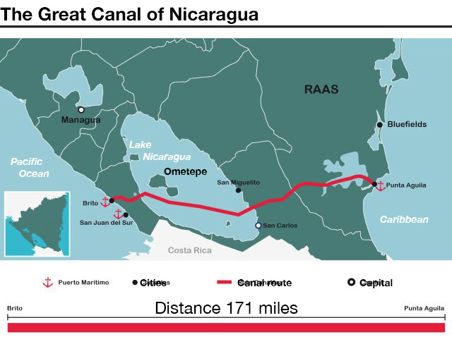 Last July, HKND’s chief engineer, Dong Yunsong, announced the route for the “Grand Canal,” a route which was not all that different from the one in studies sketched out under former-President Enrique Bolaños. “The Canal will have a total length of 278 kilometers [173 miles], of which 105 are through Lake Cocibolca,” Dong said through a translator.