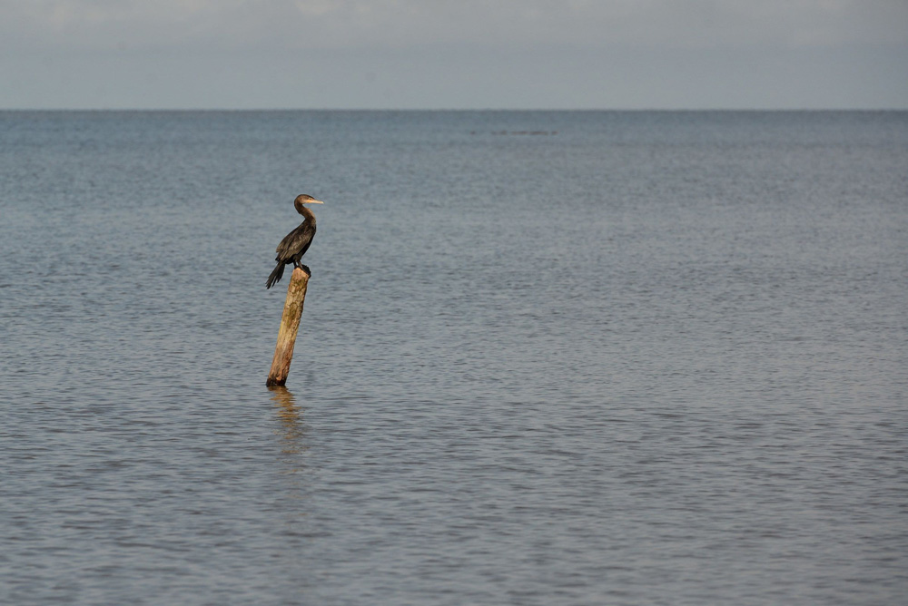 The bottom of the lake decreased in depth gradually as we approached H5. The average went from nine meters to 6.7 (30 to 22 feet) at the end of the section. The sun began to go down. We could see the Solentiname Islands a bit off, and saw white cranes, the ones painted and sculpted by the poet Ernesto Cardenal, return to the islands. Flocks of other types of birds headed to the coast of El Tule, the mainland ahead of us.