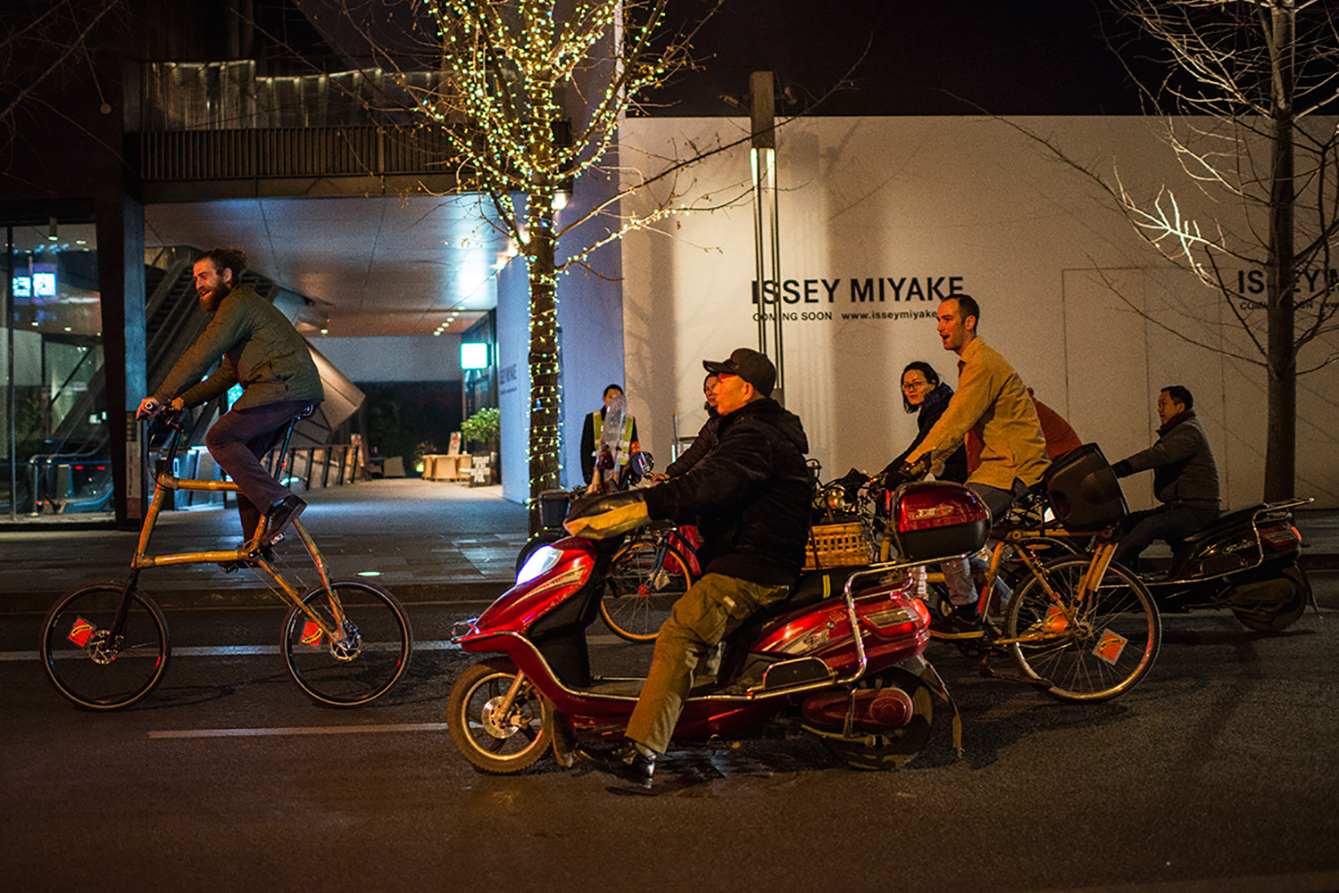 Larry’s path to China went through the medical field. After six years at the University of Louisville Medical Center in Kentucky, where many of his colleagues were from China or Taiwan, his curiosity took him to Beijing in 2007, where he taught biology at a private international school. Jacob and Larry eventually met in Beijing, where a cycling community was growing around Ines Brunn, who by then had become the undisputed queen of the fixed gear bicycle in China. Brunn, an internationally renowned artistic cyclist, helped make bikes cool again in China, selling fixies out of the original Natooke shop in an alley near the city center.