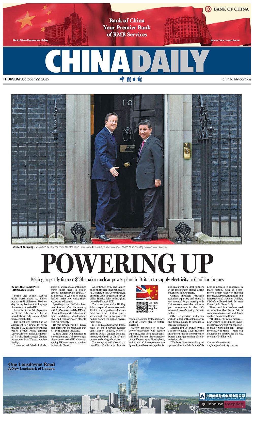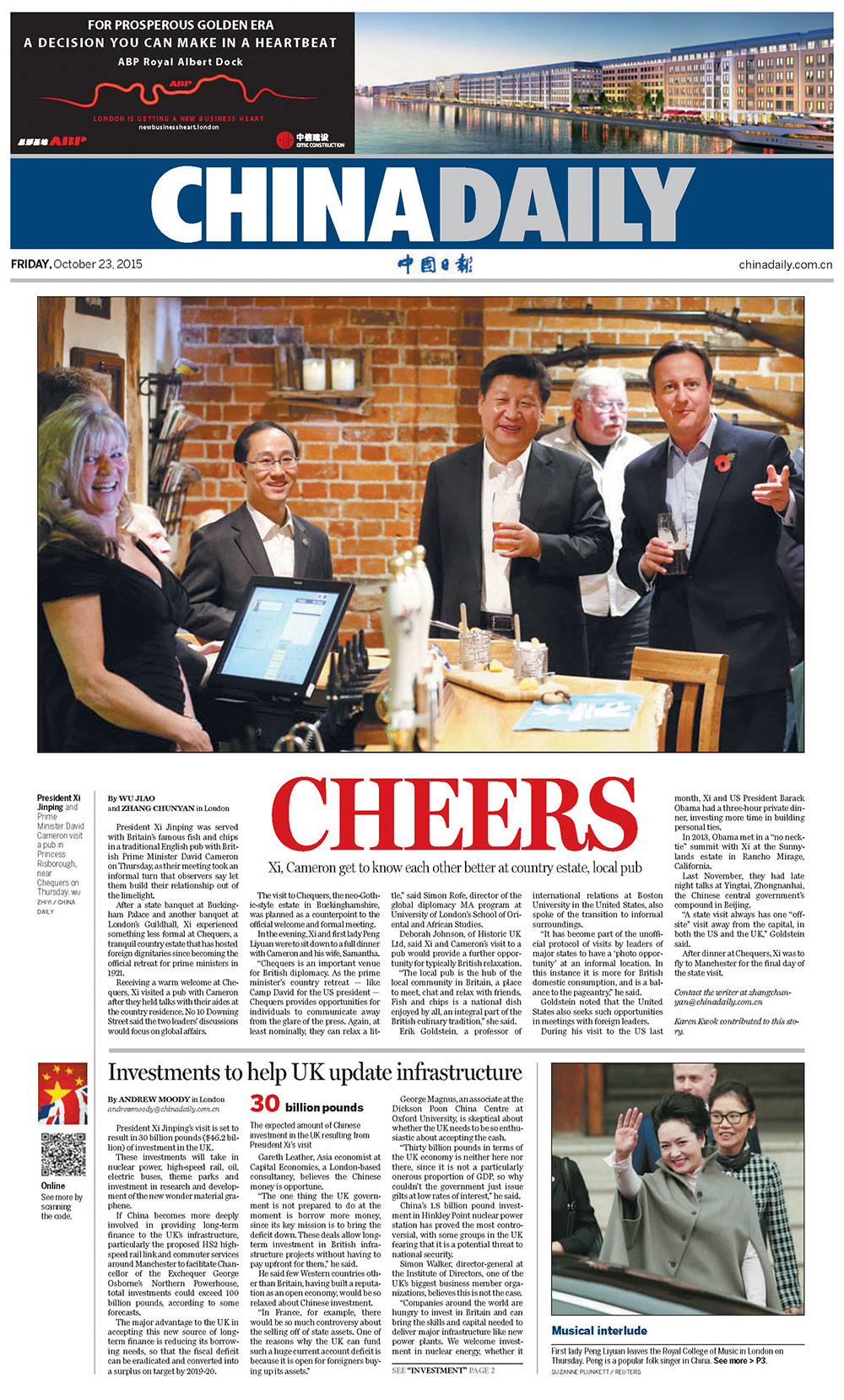 ‘China Daily’ Frontpages of Xi's State Visit to the U.K.