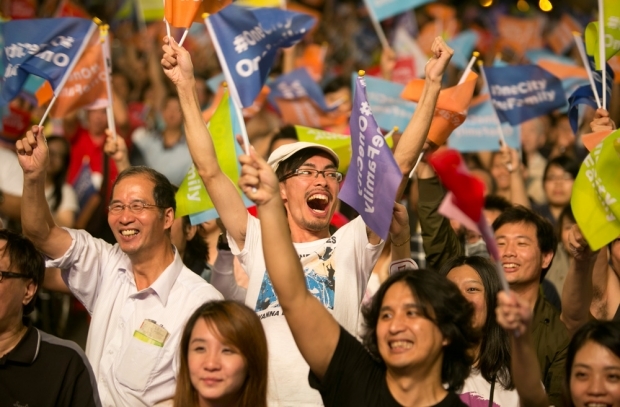 If China was in fact the invisible candidate in Taiwan’s local elections, it just lost in a landslide. On November 28, voters on the self-governing island, which mainland China considers a renegade province, selected candidates for over 11,000 village- and local-level positions, resulting in a resounding defeat for the ruling Kuomintang (KMT), the party which under Taiwan President and (now former) KMT Chairman Ma Ying-jeou has spearheaded 21 trade agreements between Taiwan and the mainland. Yet noticeably absent in Chinese media coverage and censor-approved social media discussion was any mention of what was likely a key factor in Taiwan’s election outcome: the pro-democracy protests in the Chinese territory of Hong Kong, which Taiwan’s anti-mainland protest leaders have said they are closely watching. The Taiwan elections were a demonstrably sensitive issue for Chinese censors; according to Weiboscope, a Chinese social media project operated by the University of Hong Kong, “Taiwan” was a top censored term on Chinese social network Weibo on both November 29 and 30.
