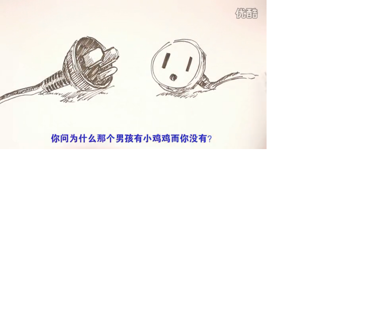 These slickly produced videos, which depict a hand drawing cartoon figures, are likely not aimed at young ones, but instead at parents searching for narratives to pass on to their children: The rapid-fire voice-overs use some high-school level vocabulary, including two bleeped cusswords hopefully outside most primary school students’ lexicon. Given a widespread reluctance to talk birds and bees—in China’s version of the stork story, parents often tell children that they were picked up “out of a garbage dump”—the Nutcracker narrator is something of a myth-buster for the young and for the ill-informed. The language and visual illustrations have amused adult viewers with hilariously off-color comparisons: In the first video, the narrator explains insemination by comparing it to an injection received at a hospital. The second clip, called “Why Are Boys and Girls Different?” addresses anatomical differences by likening male and female reproductive organs to electrical outlets and plugs. (The caption on the photo, from the second video, states: “Why does that boy have a little pee-pee and you don’t?”)