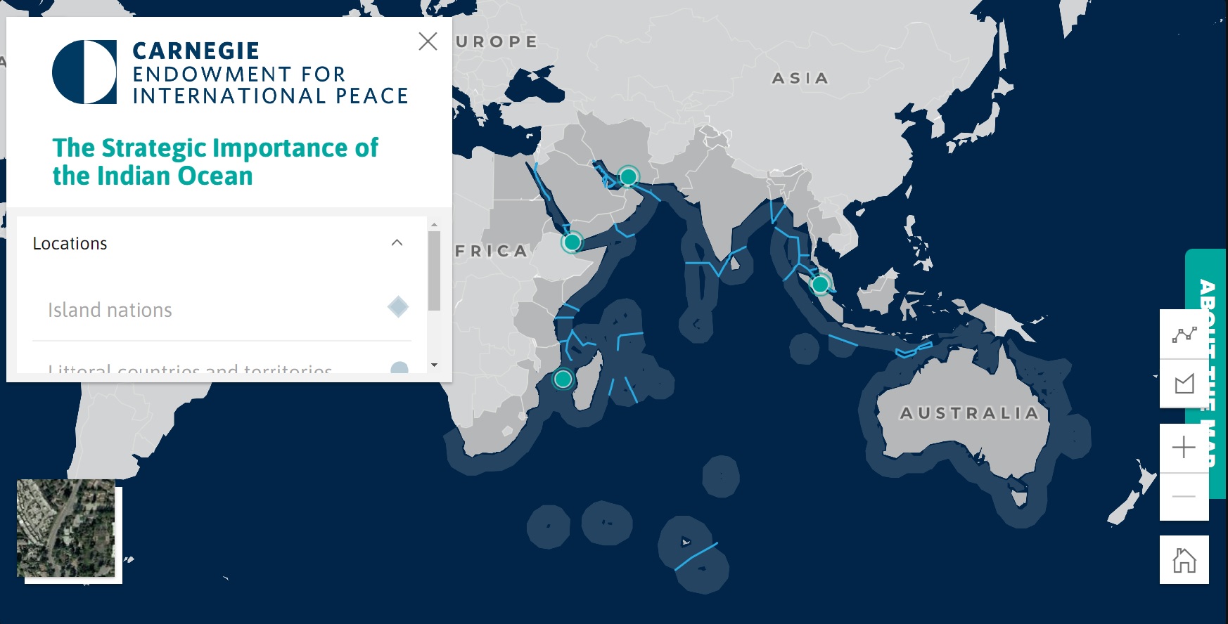 Carnegie’s Indian Ocean Initiative recently released an interactive map, “The Strategic Importance of the Indian Ocean.” The map allows you to zoom in on chokepoints, disputed territories, and maritime boundaries, providing background information on key issues in the region.