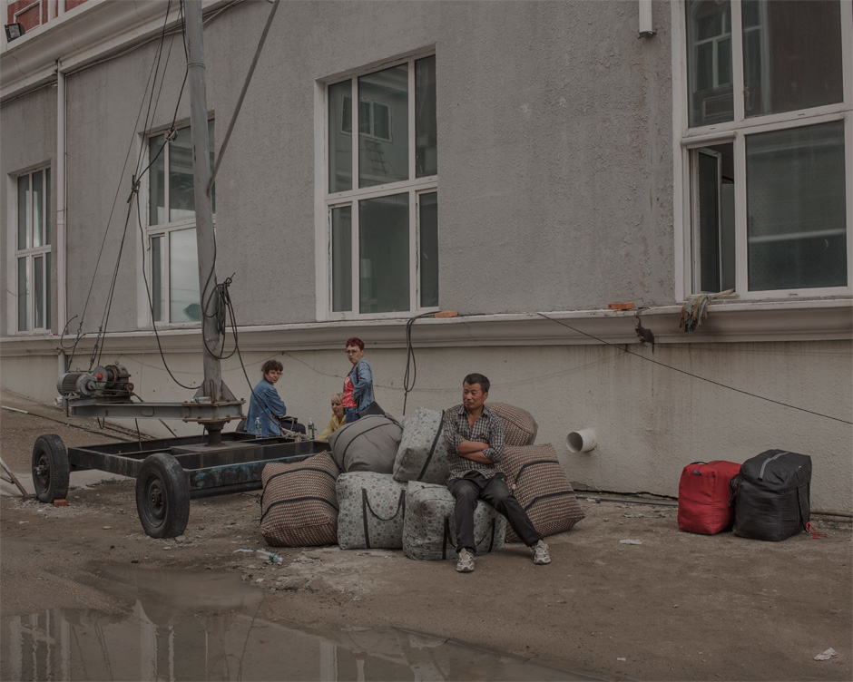 A little later that day, the train pulled in for a short stop, where the bargaining could be fuller and fiercer. Russian traders were waiting in anticipation on the platform, young men and middle-aged women. The men were gopniks—skinheads in shell suits and gold rings, faces hardened by growing up in Russia’s post-apocalyptic 1990s. (Chavs, the English would say; white trash, the Americans.) The Mongolians preferred the women, for good reason. I watched as two of the gopniks argued loudly with a Mongolian. As the train was about to leave, one of them suddenly shoved the Mongolian trader violently to the ground as the other grabbed his bundle of plastic-wrapped clothes. They bolted with the speed of practiced thieves. The Mongolian leapt to his feet, yelled, and drew his knife, drawing it back over his head to throw. The crowd gasped. He threw—and it clattered uselessly on the platform, the blade only half-extended, as the train started pulling out of the station. He grabbed his knife and leapt back into the carriage and the commiserations of his comrades. I decided that if I were the thieves, I would not frequent this route for a while.