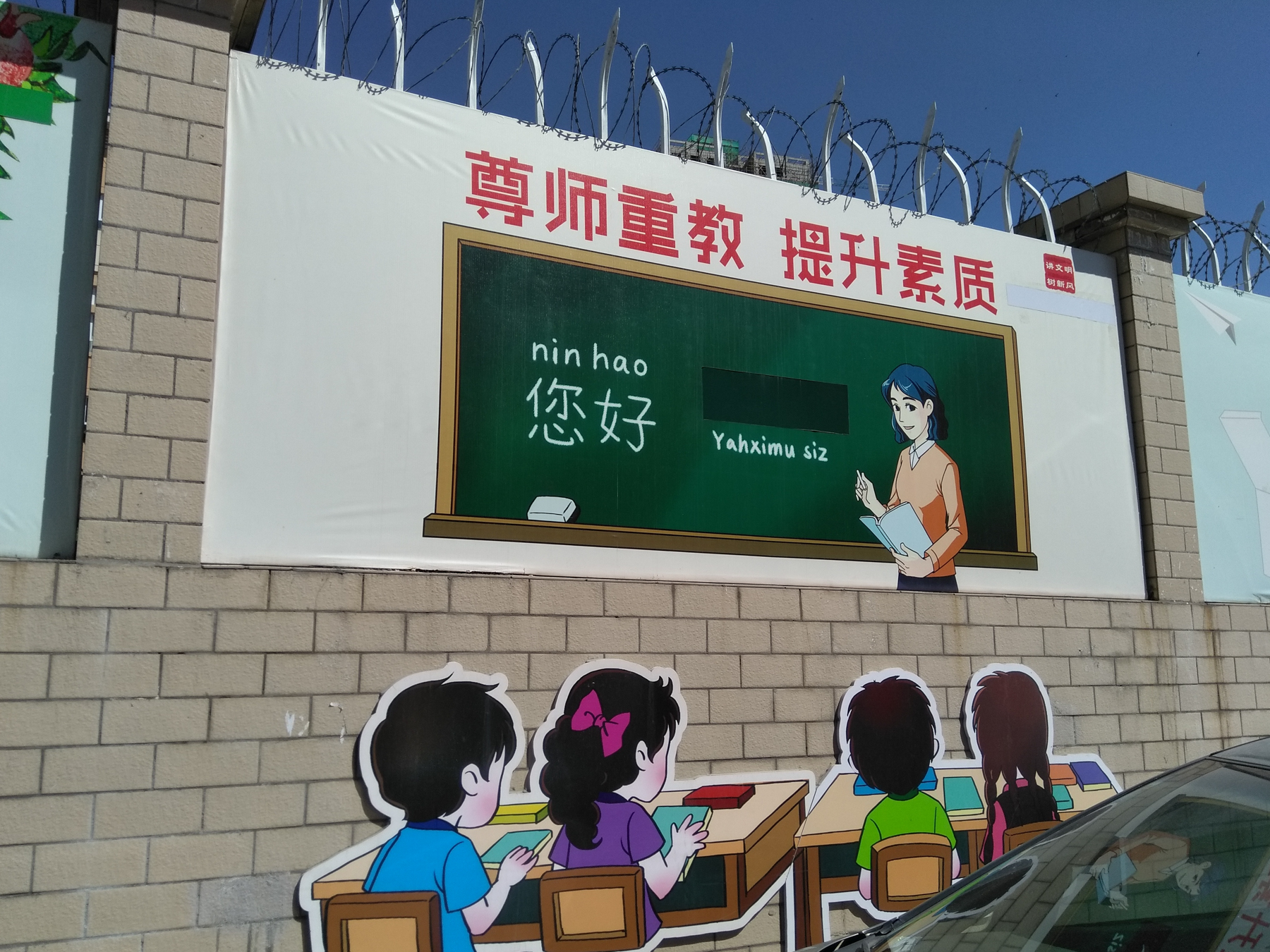 She complained of how the city’s state-run Xinhua bookstore now carries no books teaching the Uighur script, which is a modified version of the Arabic script, to children. Sure enough, I later found only one box of flashcards with Uighur phonetics on sale there. Meanwhile, outside the barricaded and razor-wired Urumqi No. 1 primary school, the Uighur script had been removed from a poster exhorting Chinese and Uighur children to respect their teachers and “improve their personal quality.” The last time that the modified Arabic script had been banned in Xinjiang was during the Cultural Revolution.
