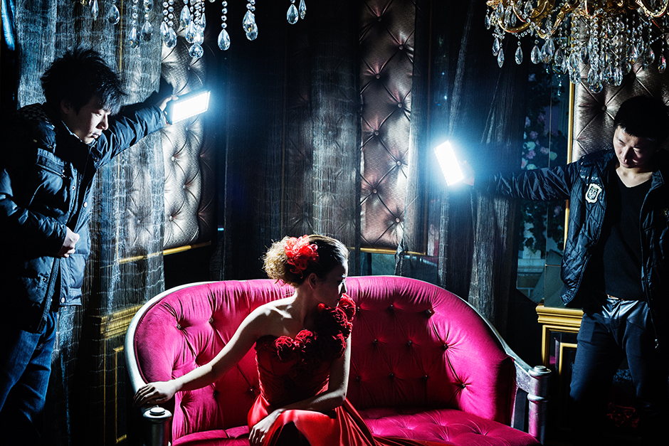 Under the harsh glare of a studio spotlight, bride-to-be Tong turns her face until it is almost completely in shadow. Tong is posing for a three-day session of wedding photographs at Shanghai’s premier Princess Studio, where couples spend between 3,000 RMB (U.S.$500) and 130,000 RMB (U.S.$21,000) to create extravagant mementos in fantasy settings of what may be the most important milestone in their lives. Yet in this rendering by French photographer Guillaume Herbaut, the carefully staged vision of marital bliss has gone awry.