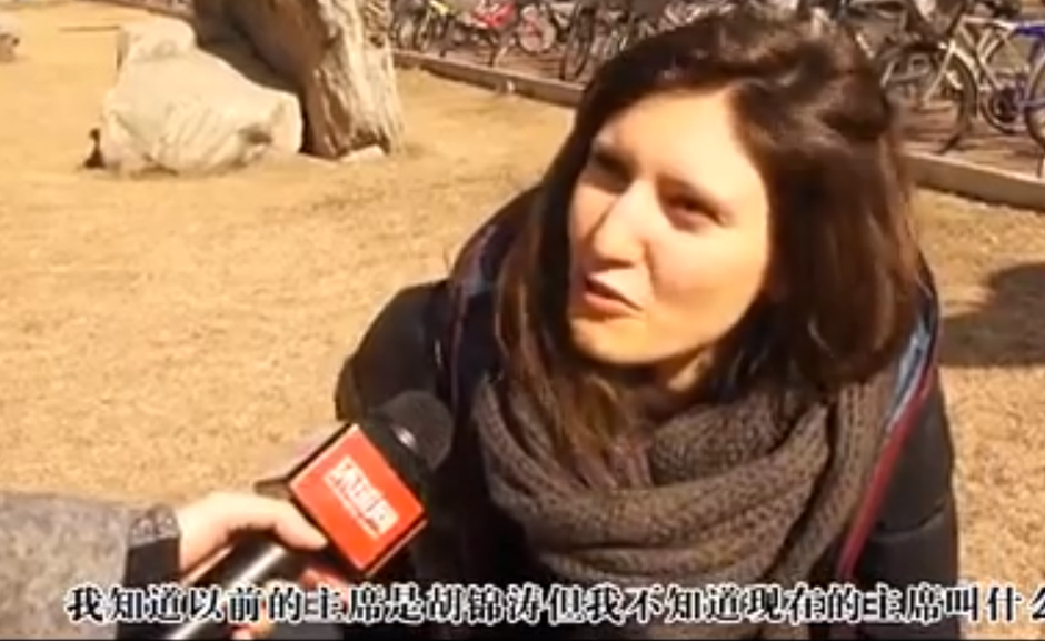 Most of the expatriates stopped on the street puzzled over questions such as “Who are the president and prime minister of China?” or “What are the ‘Two Sessions’?” In response to the video, netizen @张一君律师 joked that the pronunciation of the outgoing Chinese President Hu Jintao’s surname posed a particlar problem to English speakers: “We shouldn’t embarrass foreigners too much with President Who. Who on earth is your President?"